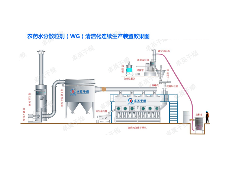 • 水分散粒劑(WDG)清潔... 農藥水分散粒劑(WG)的生產一般要經過粉碎、混合(干混)、捏合(濕混)、造粒、干燥和篩分等幾個主要階段。目前的干燥過程大多是間歇式的,本公司針對WG生產特點開發出連續式干燥設備,該...